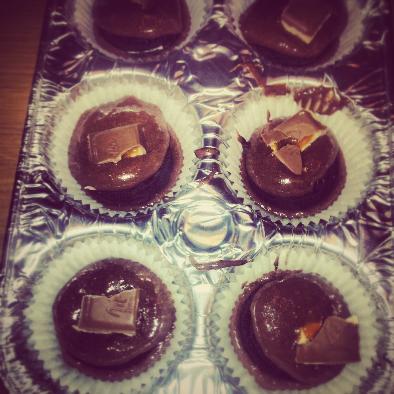 Þetta bakast við 200°í ca. 15-20min, myndi prufa að stinga í með gaffli þegar 15min eru komnar og ef ekkert kemur upp með gafflinum þá eru þær klárar. Þegar búið er að taka þær út úr ofninum þá setti ég þær út í glugga og kældi þær þar á meðan að ég bjó til kremið.