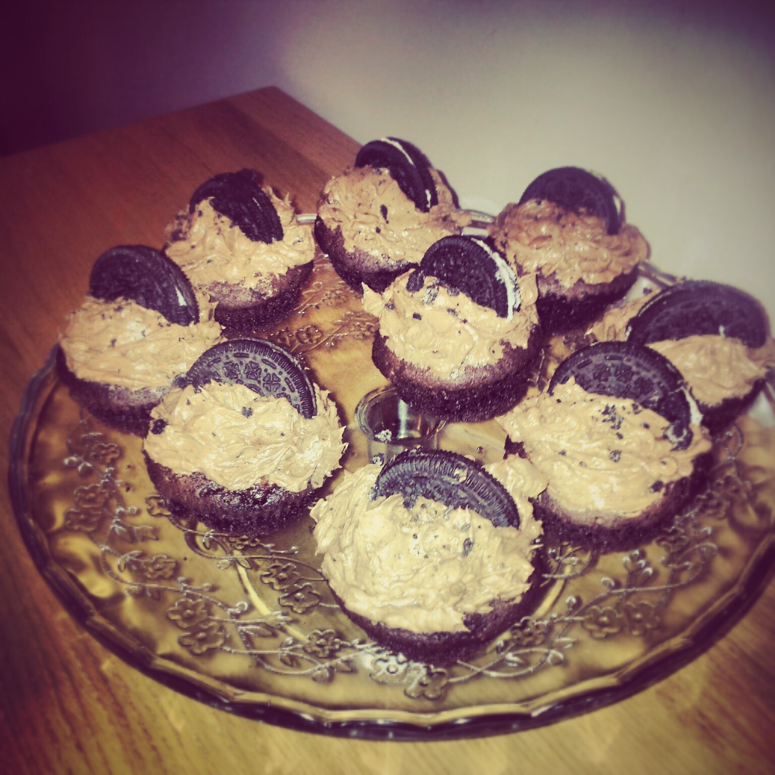 Hrærið smjörið, nutellað, flórsykurinn og sýrópið vel saman og bætið síðan hinu út í og hrærið vel. Síðan er bara að skella þeim á múffurnar þegar að þær eru búnar að kólna og síðan skar ég Oreo kex til helminga og skreytti með.