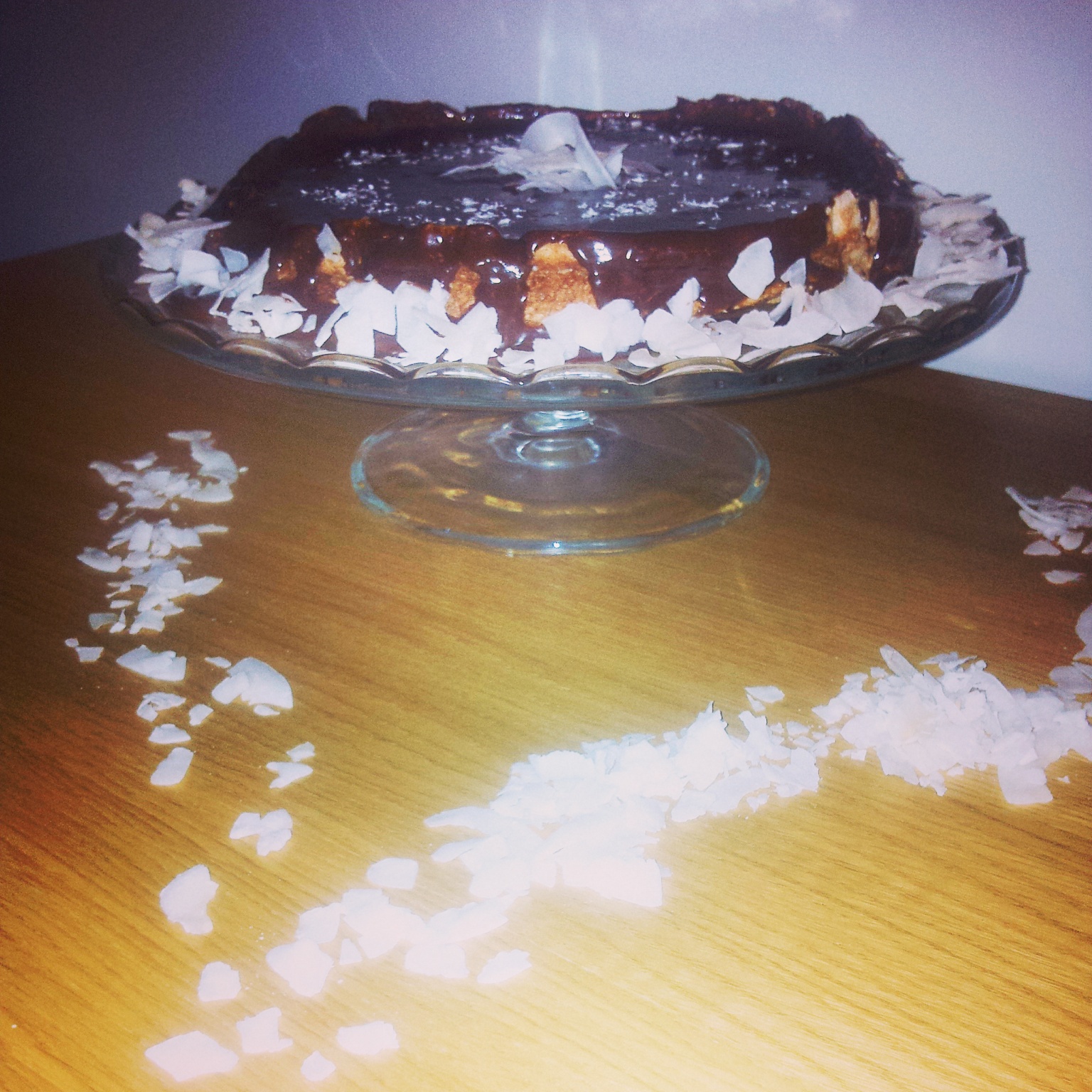 Ég er mikill kókosfíkill. Til að mynda fæ ég mér stundum bragðaref með kókos, kókosbollu og bounty. Of mikið hugsa kannski sumir, en ég get sagt ykkur að það er aldrei of mikið af kókos. Ég átti afmæli núna á föstudaginn og treysti ekki á það að Magnús myndi henda í einhverja gúrm ammóköku, þannig ég ákvað að baka uppáhaldskökuna mína sem mamma bjó oft til. Útgáfan hennar mömmu er þó þannig að uppskriftin er tvöföld og bakaðir tveir botnar og settur rjómi á milli. En þar sem ég er ekki rjómatýpan þá sleppi ég honum og hef hann bara til hliðar fyrir þau sem vilja.